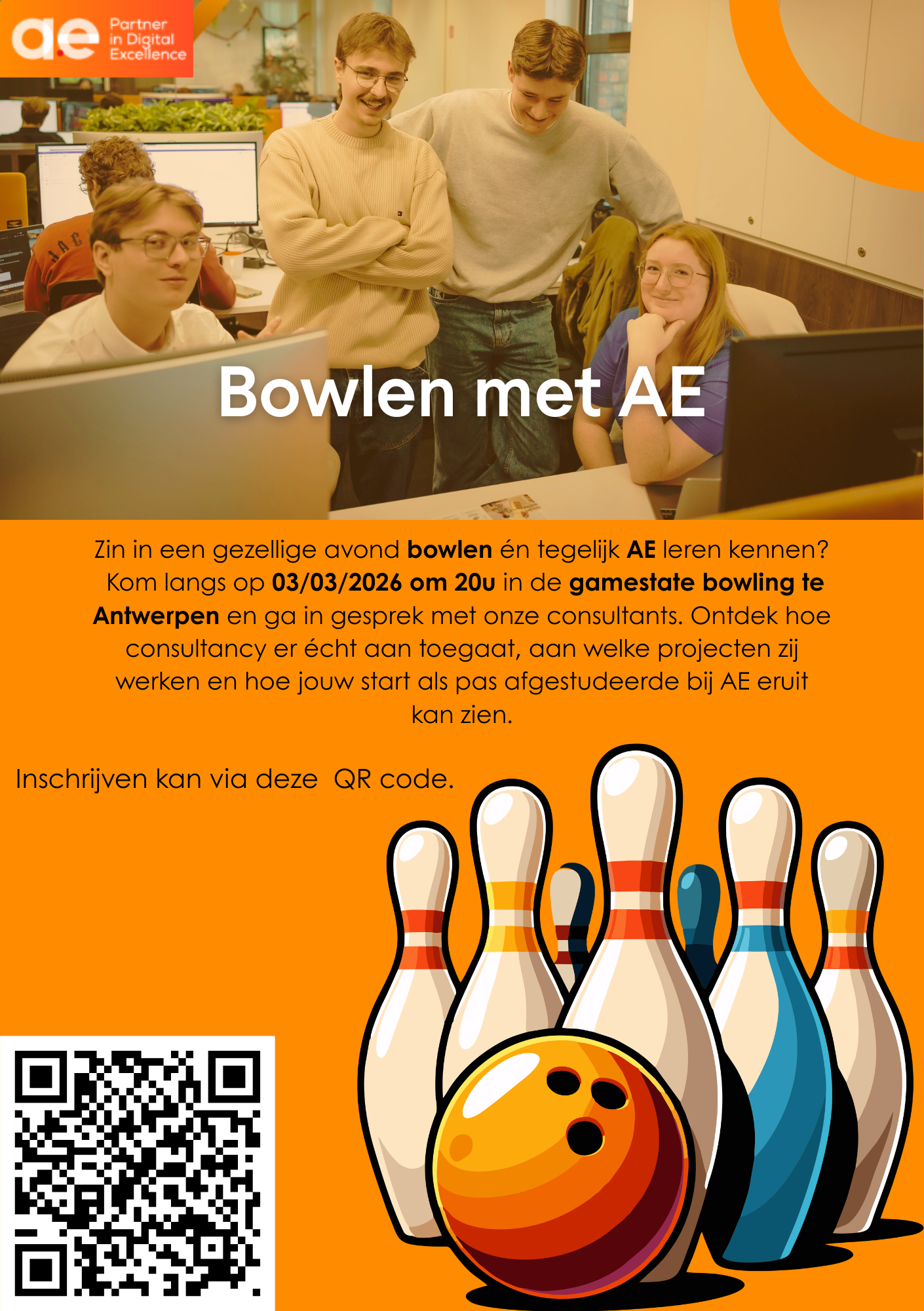 Als business- en ICT-consultancy organisatie vormt AE de perfecte match voor de student Handelsingenieur in de Beleidsinformatica. Met hun hoofdkantoor in Leuven en vestigingen in Antwerpen, Hasselt, Gent en Berchem, ondersteunen zij bedrijven bij het realiseren van strategische doelstellingen binnen de digitale wereld. Wat AE uniek maakt voor HIB-profielen, is hun integrale aanpak: elke uitdaging wordt steevast benaderd vanuit zowel een IT- als businessperspectief. Door te inspireren, adviseren en co-creëren binnen expertisedomeinen zoals business & functionele analyse, IT-architectuur, data science en software engineering, bieden zij een omgeving waarin jouw hybride kennis direct tot zijn recht komt. Daarnaast biedt de aanwezigheid van AE Studio, hun eigen in-house product company, een extra dimensie voor wie graag betrokken is bij de volledige levenscyclus van digitale producten. Bij AE vind je de ideale plek om complexe bedrijfsvraagstukken te vertalen naar innovatieve technologische oplossingen.